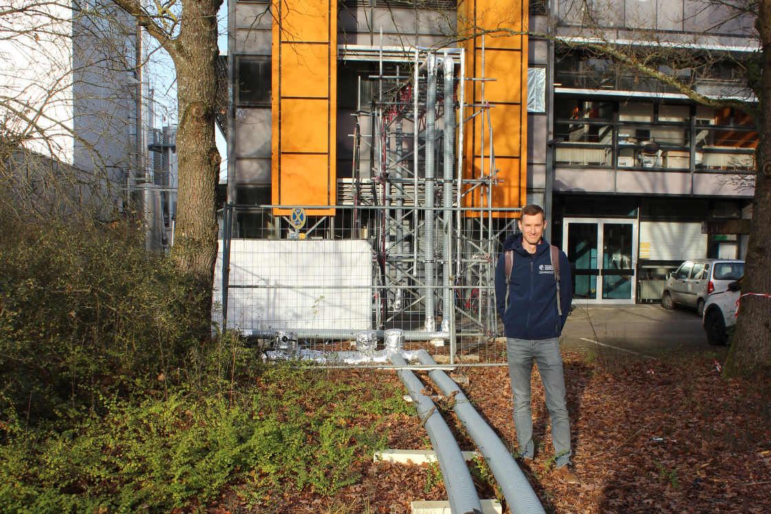 Schedel zeigt das auf einem Spaziergang vom Institut zum nahen Versuchsgelände: Dort ragen neuerdings einige Rohre in dem Boden. „Damit leiten wir Nahwärme vom Kraftwerk am Campus Lichtwiese in die Tiefe“, erklärt Schedel.